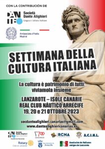 Ore 11:00- Real Club Nautico de Arrecife – Presentazione e inaugurazione della Settimana della Cultura italiana, organizzata dalla Società Dante Alighieri-Comitato delle Isole Canarie. Saluti del Presidente del RCNA D. Julio Romero Ortega.